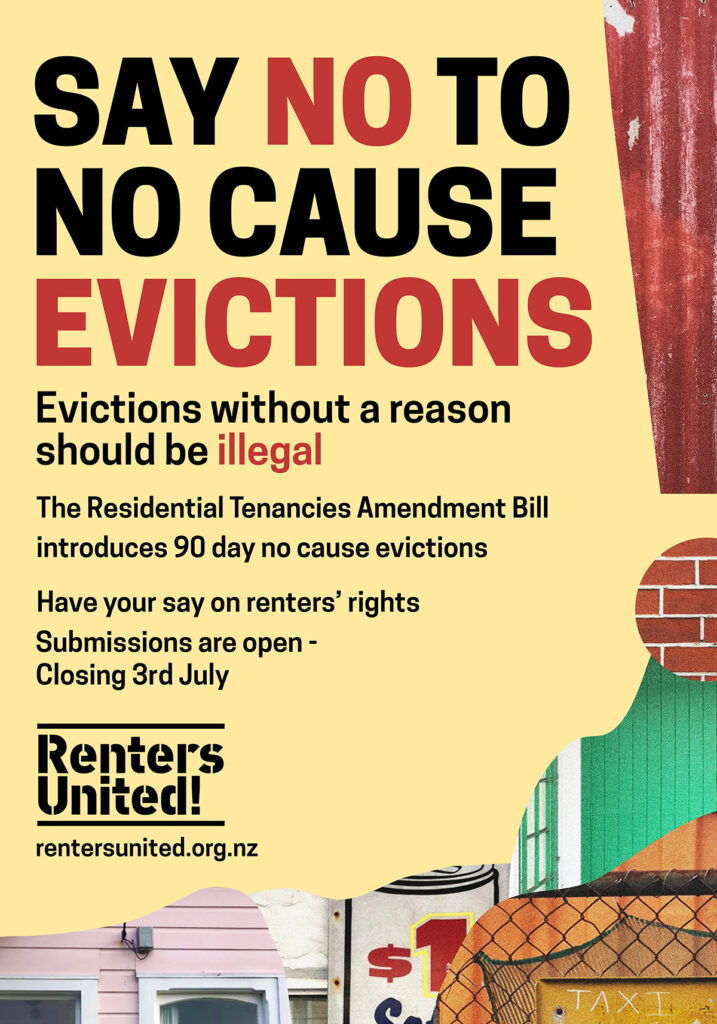 The government is proposing to introduce ‘no cause evictions’ in the Residential Tenancies Amendment Bill. This change would give landlords the power to terminate any periodic tenancies with only 90-days notice – no reason required.